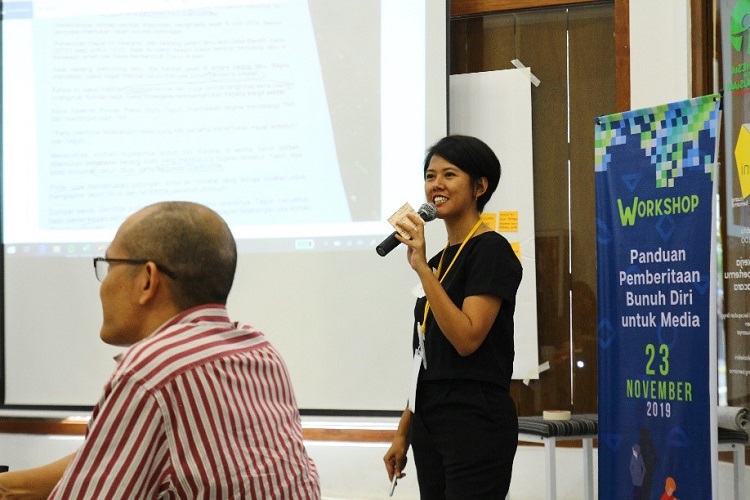 Pada November 2019, bertepatan dengan Hari Peringatan Penyintas Kehilangan Bunuh Diri Internasional, koalisi kami melakukan workshop untuk para jurnalis, editor, dan profesi media lain dengan jenjang karier menengah. Agung Dharmajaya, perwakilan dari Dewan Pers, adalah pembicara utama. Menurutnya, pertemuan nasional untuk Pemimpin Redaksional harus diadakan. Selama workshop, kami membahas peran media dalam menyebarkan efek Werther (bunuh diri tiruan) dan efek Papageno (perlindungan dari bunuh diri lanjutan). Gading Yonggar Ditya dari LBH Pers meyakinkan partisipan bahwa pedoman tidak bertujuan untuk melanggar kebebasan pers, melainkan untuk edukasi bagi media. Widia Primastika dari AJI Jakarta dan Caecilia Tiara dari CNN Indonesia membahas cara terbaik dalam memberitakan media. Kedua organisasi media ini memiliki kebijakan ketat dalam pemberitaan bunuh diri: bunuh diri harus dianggap sebagai kondisi kesehatan mental dan bukan sebagai tindak kejahatan atau amoral. Kami juga mengundang beberapa orang yang punya pengalaman langsung dan koordinator baru Into The Light Indonesia, Alfonsus Bayu Dirgantara, untuk berbagi pengalaman kehilangan teman karena bunuh diri dan bagaimana media memengaruhi keinginan bunuh diri temannya.